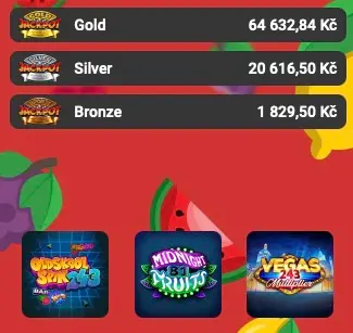 | Silver | cca 30 000 Kč | Stříbrný jackpot, padá relativně často |