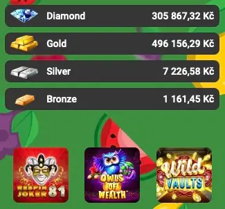 - Bronze (Bronzový) – stovky korun, nejčastější výhra