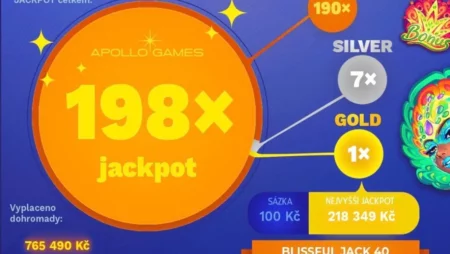 V prosinci padlo v casino Apollu neuvěřitelných 198 jackpotů! Tím největším tahákem byl zlatý jackpot – parádních 218 349 Kč! Víte, kde padl? Na automatu Blissful Jack 40. A to v čtvrtek 7.12., přesně ve 21:39, za sázku 100 Kč. Jak říká manažer casina Stanislav: „Další zlatý jackpot byl pro nás překvapení, obzvlášť na hře Blissful Jack 40, naší oblíbené novince.“
